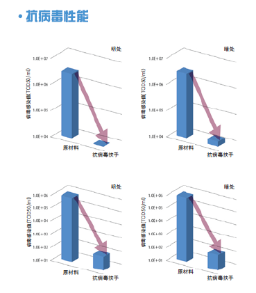 NAKA扶手抗病毒性:8小時能達(dá)到99%以上的抗病毒效果:原來的樹脂扶手與抗病毒配方的樹脂扶手在亮的地方與暗的地方分開進(jìn)行了測試。隨著時間推移,抗病毒配方的樹脂扶手有了明顯的效果,8小時后觀測出了99%以上的抗病毒效果。根據(jù)安裝場所及使用條件,其結(jié)果是不同的,使用抗病毒扶手,降低了傳染病的風(fēng)險,可作為維持衛(wèi)生清潔環(huán)境的產(chǎn)品所使用。如圖三
